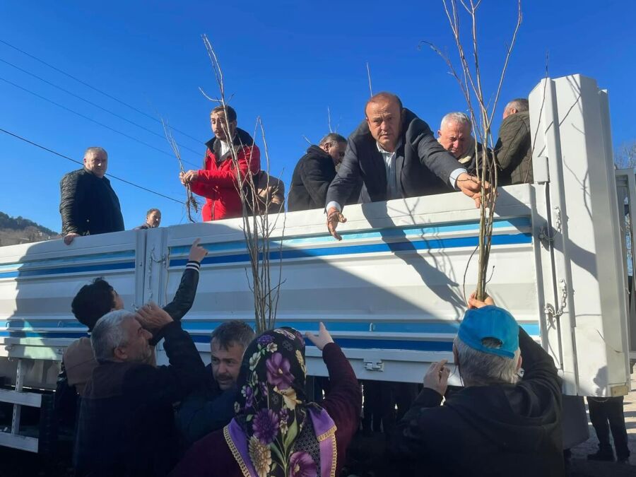 Ne mutlu insanca yaşamak için mücadele verenlere. Yaptığımız çalışma Her şey Alaplı için. Bu kapsamda Muhtarlarımızla yapılan işbirliği ile Tüm Köylerimize gal arısına dayanıklı 30 bin adet kestane fidanı dağıttık. Bu sayıyı artırmaya devam edeceğiz. Birkaç sene içinde etkisini çok daha fazla göreceğiz. Ürünlerimiz bereketli olsun.” diye konuştu. Fidan dağıtımı sırasında vatandaşların yoğun ilgisi dikkat çekti