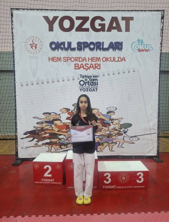 Yozgat’ta yapılmakta olan Taekwondo Okullarası Türkiye yarıfinal musabakalarında.Merih Şule Orta okulu ögrencisi Elif Asel Akdeniz 33.kg bayanlar kategorisinde 3.olarak Adanada yapılacak olan finallere katılmaya hak