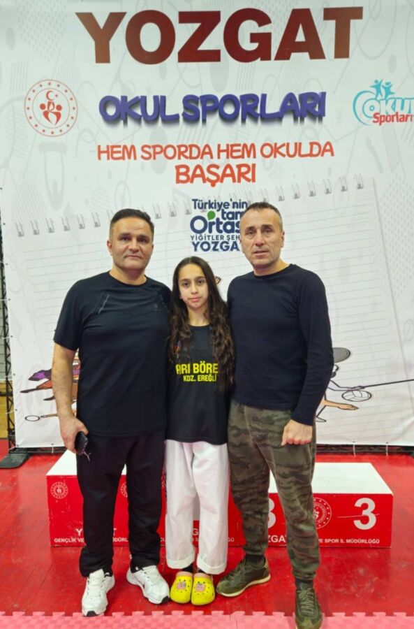 Kdz.Ereğli Merih Şule Orta Okulu Öğrencisi Elif Asel Akdeniz Taekwondo Okullarası Türkiye yarıfinal musabakalarında 33 kg Üçüncü oldu.