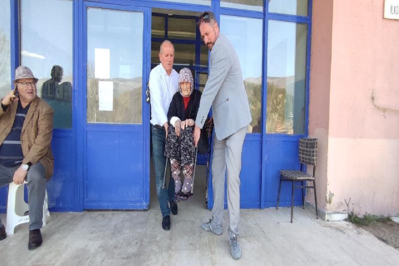 Köyün 93 ve 91 yaşındaki iki seçmeni de sandığa giderek oyunu kullandı.
