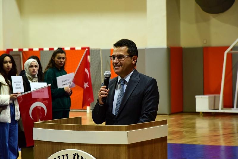 Takımlar yerini aldıktan sonra etkinlik, saygı duruşu ve İstiklal Marşı’nın okunması ile devam etti. Açılış töreninde konuşan Kastamonu Üniversitesi Rektörü Prof. Dr. Ahmet Hamdi Topal, Cumhuriyetin 100. yılına atfen düzenlenmiş olan 100. Yıl Cumhuriyet Spor Oyunları’nın açılışı için bir araya gelmekten duyduğu memnuniyeti dile getirdi. 8 farklı branşta, 14 fakülte, 13 meslek yüksekokulunun yarışacağı ve 31 Mayıs 2024 tarihine kadar sürecek 100. Yıl Cumhuriyet Spor Oyunları’nın en uzun süreli spor müsabakalardan biri olduğunu söyleyen Rektör Topal, “Üniversitemizin öğrencilere pek çok spor dallarında fiziki imkan sunuyor. Tüm öğrencilerimizin bu imkanlardan faydalanması gerekiyor. Ayrıca, öğrencinin gerek spor gerekse kültürel faaliyetlerde ısrarcı olmaları ve bu taleplerini üniversite yönetimine iletmeleri gerekiyor. Kastamonu Üniversitesi olarak sporu ve sporcuyu her alanda destekliyoruz” dedi.