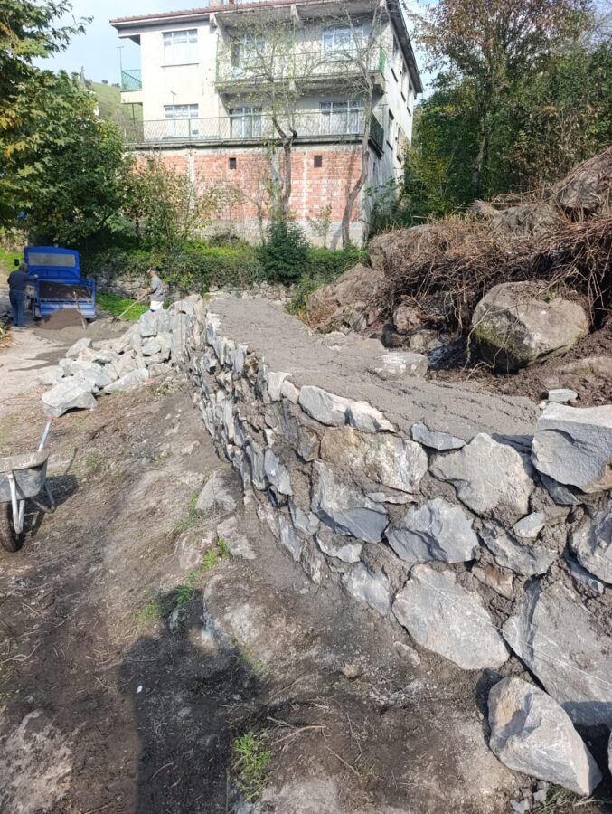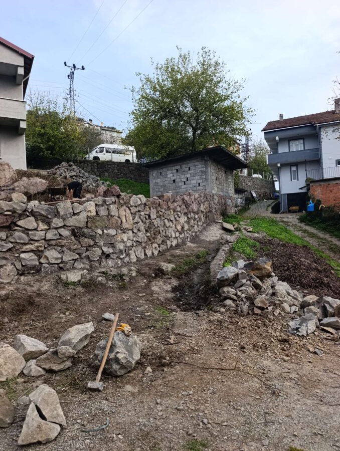 Zonguldak’ın Ereğli ilçesi Güllük köyünde yapımı devam eden köy konağının çevre düzenlemesi ve taş duvar çalışmaları sona yaklaşıyor. Köy Muhtarı Ali Arslan, çalışmalara katkı sağlayanlara teşekkür etti.