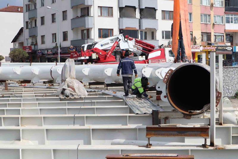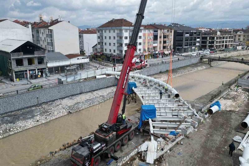 Düzce Belediyesinin şehrin iki yakasını birleştiren Asar Deresi üzerinde gerçekleştirdiği ve şehre yüzlerce yıl hizmet edecek şekilde hazırlanan projede 2. köprünün kemer montajına başlandı.