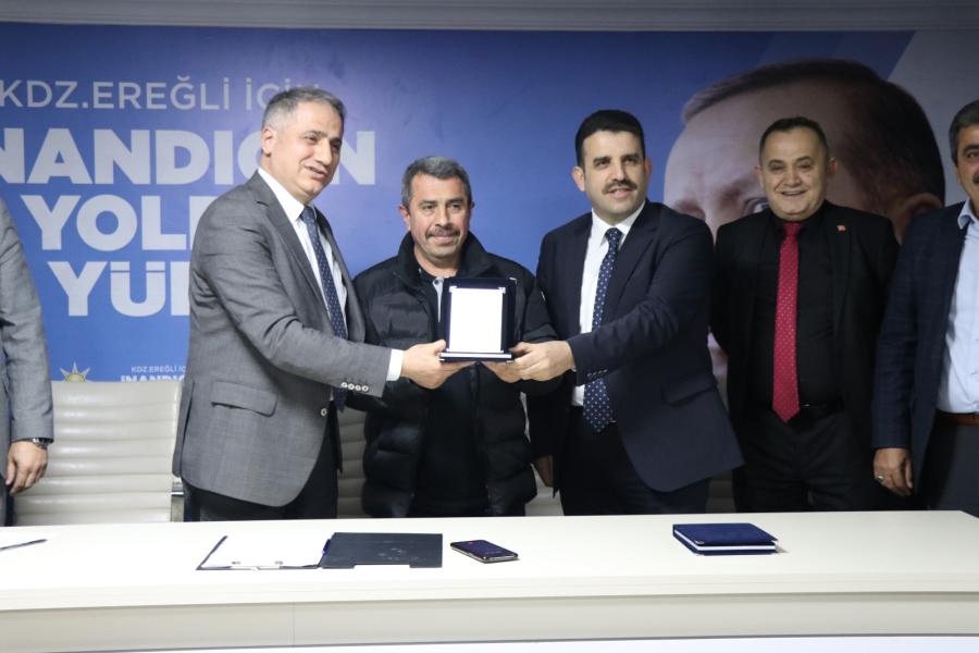 Konuşmaların ardından AK Parti Kdz. Ereğli İlçe Başkanı Saffet Bozkurt, 2013-2020 yılları arasında İlçe Başkanlığı yapan Fatih Çakır ve yönetim kurulu üyelerine plaket takdiminde bulundu. Başkan Bozkurt, Çakır ve yönetim kurulu üyelerine partiye ve ilçeye vermiş oldukları hizmetlerden dolayı teşekkür ederek, çalışmalarında başarılar diledi.