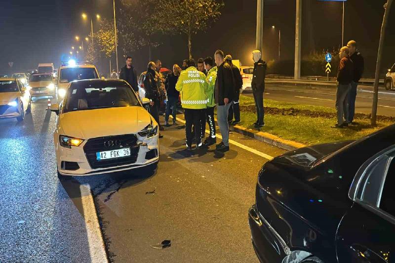 Kaza, Kalıcı Konutlar bağlantı yolunda meydana geldi. Alınan bilgilere göre, Y.Y. idaresindeki 81 ADE 704 plakalı Volkswagen marka otomobilin sürücüsü Kervan kavşağından Kalıcı Konutlar istikametine seyir halindeyken, trafikte hız yapınca duran trafiği fark etmedi. Yaklaşık 40 metre fren yapan sürücü Y.Y., aynı istikamette seyir halinde olan A.B. idaresindeki Audi marka otomobil ile Y.B.A. idaresindeki 81 ABB 744 plakalı otomobile çarparak refüje çıktı. Kazada araç sürücüsü yaralanırken, ihbar üzerine bölgeye sağlık ekipleri sevk edildi. Yaralı sürücü, olay yerinde ilk müdahale yapılmasının ardından hastaneye kaldırılırken, kaza sebebiyle tek şeritten verilen yol araçların kaldırılmasının ardından normal seyrine döndü. Kaza ile ilgili inceleme başlatıldı.