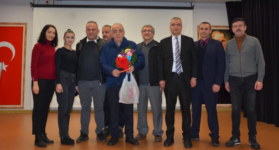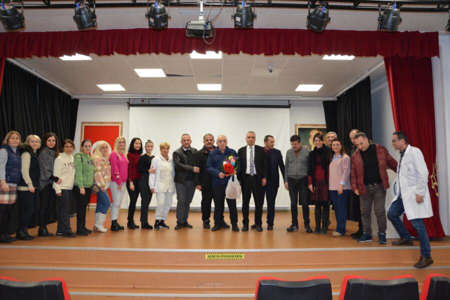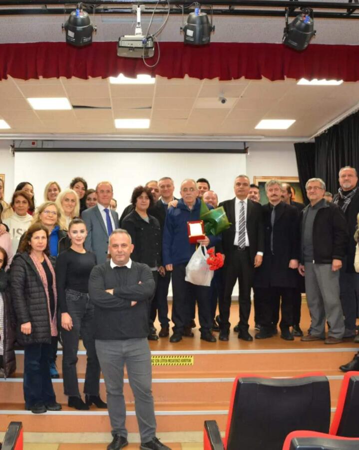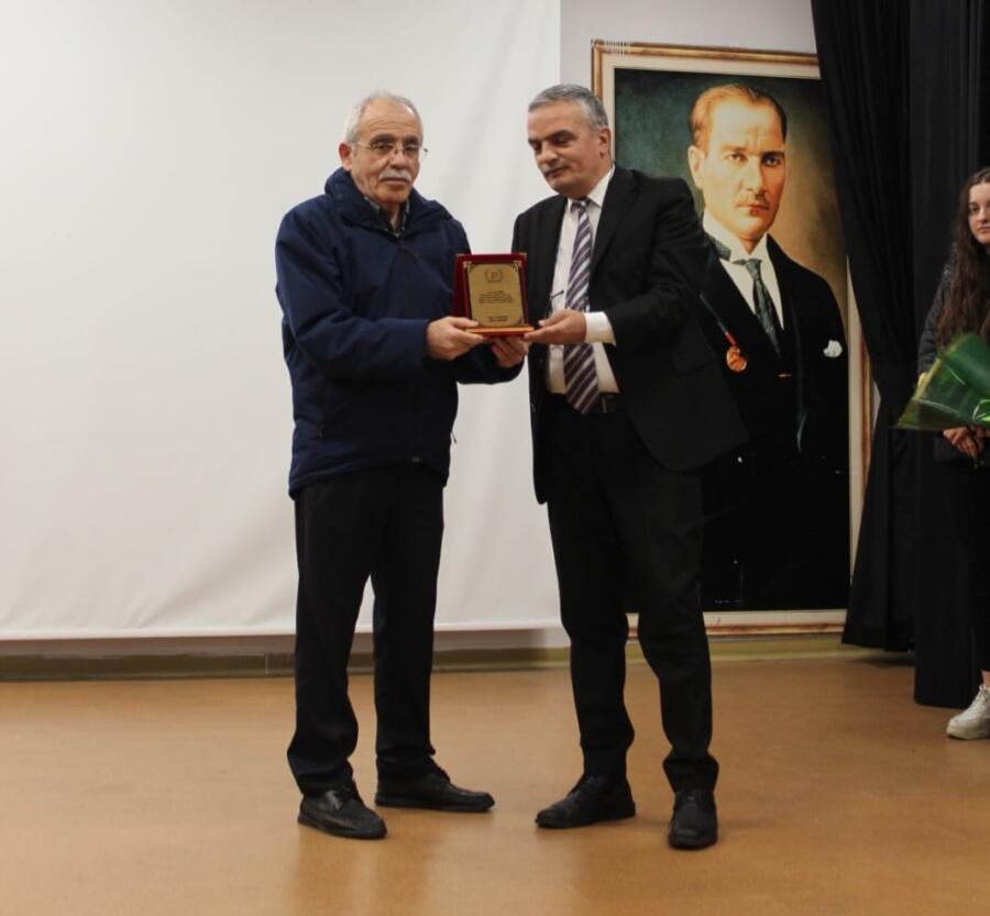 Okul Müdürü Uğur Yağmur Ali İbik’e plaket ve çiçek takdim ederek eğitime sunmuş olduğu katkılardan dolayı teşekkür etti.