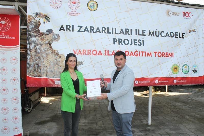 Arı yetiştiriciliğinin geliştirilmesi ve arı sağlığının korunması amacıyla Arı Zararlıları ile Mücadele Projesi çerçevesinde Düzce’de faaliyet gösteren 786 arıcıya 65 bin kovan için ilaç dağıtım töreni yapıldı.