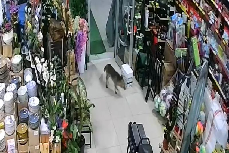 Dükkana giren tilkinin dükkan etrafında dolaşmasının ardından işletmeye girdiği anlar güvenlik kamerasına an be an yansıdı.
