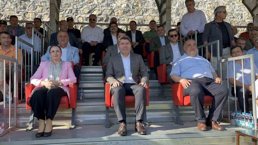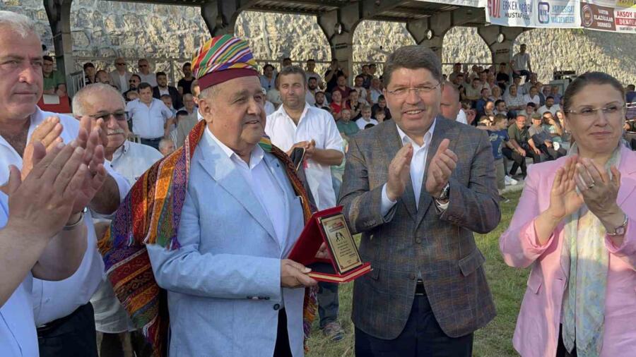 Güreş müsabakalarını takip eden Adalet Bakanı Yılmaz Tunç, güreş ağalığına seçilen Bartın Belediye Başkanı Hüseyin Fahri Fırıncıoğlu’na plaketini takdim etti.
