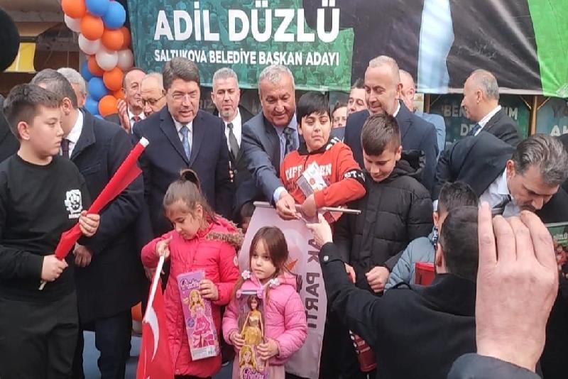 Bakan Tunç, AK Parti Saltukova Belediye Başkan Adayı Adil Düzlü’nün adına da gönderme yaparak, “Adalet Bakanı’nı onun için çağırdı. Adil, adaletli olan. Değil mi” diye esprisini yaptı