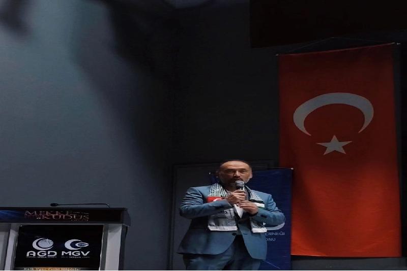 Programda konuşan AGD Şube Başkanı Aziz Gündoğdu, “Burada dünyanın en önemli, en kıymetli olaylarından bir tanesi olan Mekke’nin fethini kutlamak, konuşmak, anlamak noktasında toplanmış bulunuyoruz. Mekke’nin fethi çok önemli. Mekke’nin fethini gerçekleştiren ordunun komutanı efendimizdir. O açıdan Mekke’nin fethi bizim için çok önemli ve önemini özellikle genç nesle her yıl tekrar tekrar hatırlatmak gereğine inanıyoruz. Kudüs Mekke’den sonra yeryüzünün en eski şehirdir. Etrafı bereketlendirilmiş topraklardır ve peygamberler şehridir” dedi.
