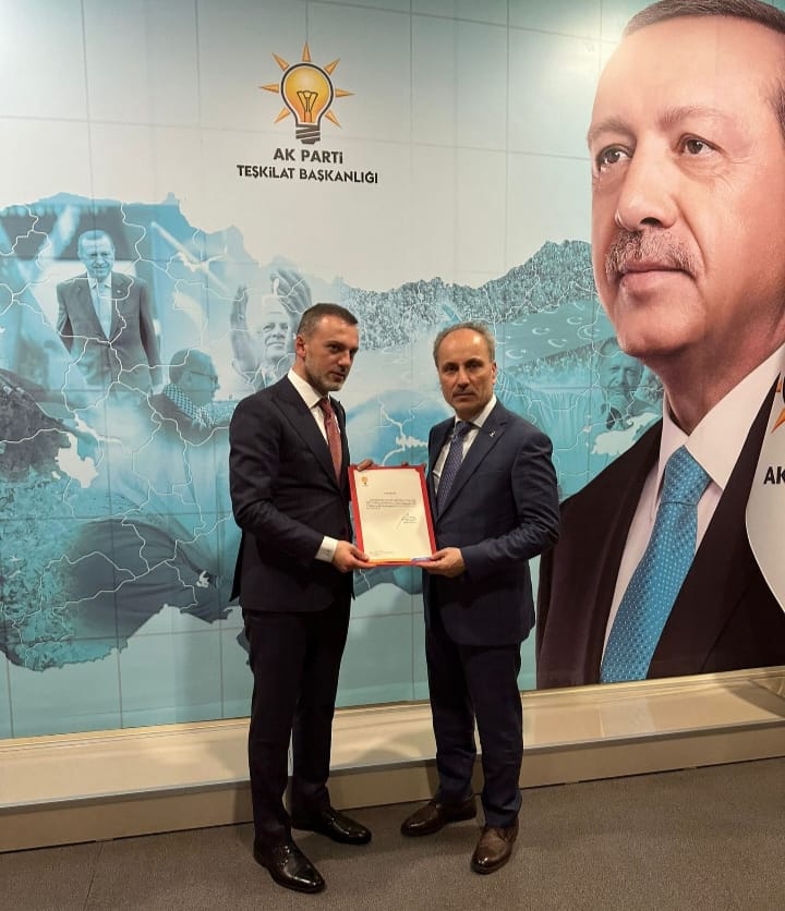Yeni Başkan İbrahim Sezer mazbatını AK Parti Genel Merkezi‘nde aldı