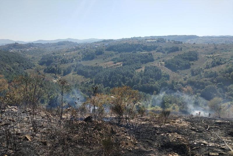 Zonguldak’ın Alaplı ilçesinde çıkan yangında 10 dönümlük fındık bahçesi yandı.