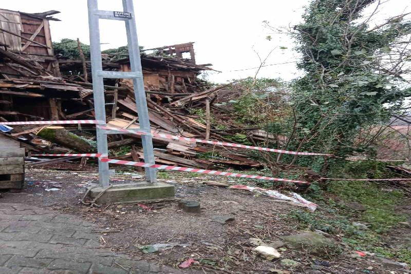 Olay, gece saatlerinde Zonguldak’ın Alaplı Büyük Tekke köyünde bulunan bir metruk binada meydana geldi. Edinilen bilgiye göre, gece saatlerinde etkili olan yağmur ve fırtınadan etkilenen 100 yıllık ahşap ev tamamen kullanılmaz hale geldi. Sabah saatlerinde sokağa çıkan köy sakinleri, binanın çöktüğünü görüp hemen muhtara haber verdi. Köy muhtar ekibi hemen ahşap binanın olduğu sokağı araç ve yaya trafiğine kapattı.