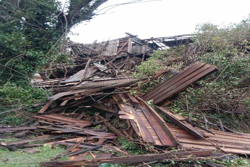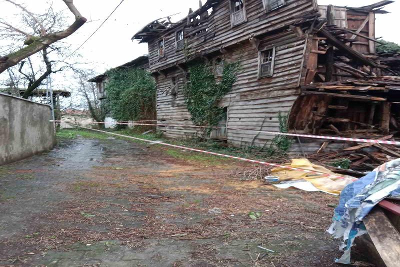 Zonguldak’ın Alaplı ilçesine bağlı Büyük Tekke köyünde terk edilmiş 100 yıllık ahşap ev fırtına nedeniyle yıkıldı.