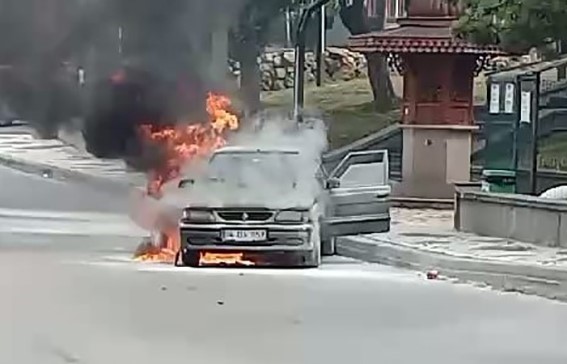 Bolu’da alev alev yanan otomobil kullanılamaz hale geldi