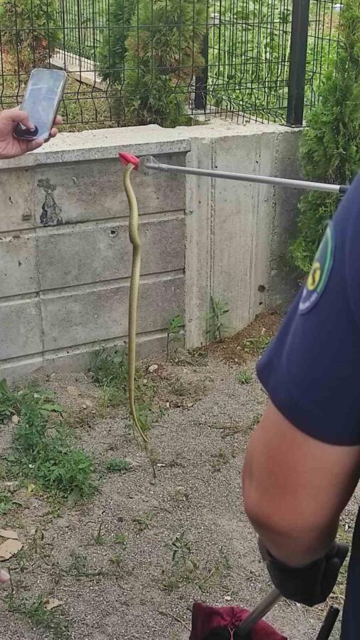 Olay, Bolu’nun Kalıcı Konutlar Mahallesi mevkiinde bulunan bir apartmanın bahçesinde meydana geldi. Edinilen bilgiye göre, apartmanın bahçesinin duvarının üzerinde bulunan tellerde bir vatandaş, yılanın süzüldüğünü gördü. Yılanı görerek panik yaşayan vatandaş, durumu Bolu Belediyesi İtfaiye Müdürlüğü ekiplerine bildirdi. Olay yerine gelen itfaiye ekipleri tarafından tellerde duran yılan, sopa yardımıyla tellerin üzerinden alındı. Güvenli bir şekilde tellerden alınan yılan, ekipler tarafından doğaya salındı.