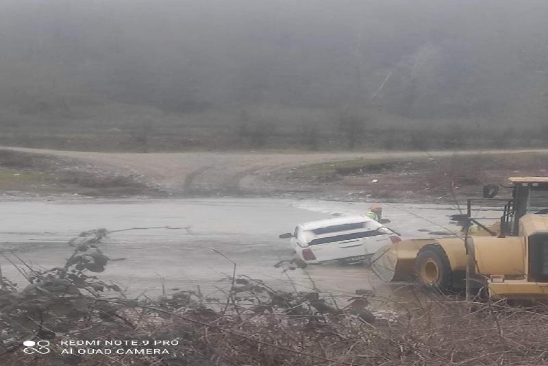 Mollabey alternatif yolunda bir araç sürücüsü, çay içerisinden geçmek istedi. Bir müddet ilerleyen sürücü aracıyla mahsur kaldı. Sürücünün durumu yakınlarına haber vermesi üzerine olay yerine iş makinesi getirildi. Halatla iş makinesine bağlanan araç, bulunduğu yerden çekilerek ana yola çıkartıldı.