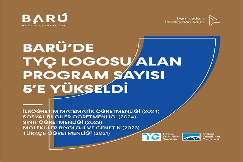 Bartın Üniversitesinde (BARÜ) kalite güvencesi onaylanarak Türkiye Yeterlilikler Çerçevesi (TYÇ) logosu almaya hak kazanan program sayısı 5’e yükseldi.