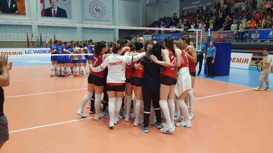 Karabük’te düzenlenen 11. Avrupa İşitme Engelliler Voleybol Şampiyonası grup maçlarının tamamlanmasıyla yarı final mücadeleleri ile devam ediyor. Yeni Mahalle Spor Salonu’nda oynanan müsabakada Türkiye Kadın Milli Takımı, yarı finalde İtalya ile karşı karşıya geldi. Ay-yıldızlı ekip ilk seti 25-17, ikinci seti 25-18, üçüncü seti de 26-24 üstün tamamlayarak sahadan 3-0 galip ayrıldı ve finale yükseldi. Galibiyetin ardından milliler, finale çıkmanın sevincini erik dalı oynayarak kutladı.