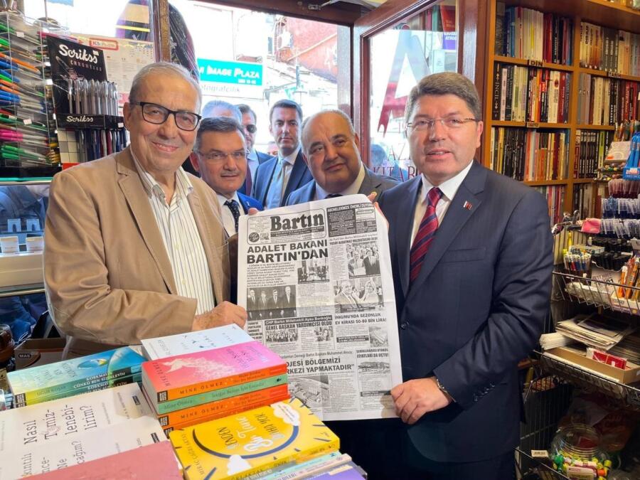 Adalet Bakanı Yılmaz Tunç, Bartın ziyaretini esnaf gezisi ile sürdürdü. İlk resmi programını Bartın’a gerçekleştiren Adalet Bakanı Yılmaz Tunç, şehirdeki ziyaretlerini sürdürüyor. Bartın Belediye Başkanlığı ve Bartın Adliyesi’ni ziyaret eden Bakan Yılmaz Tunç, Cuma namazını da Şadırvan Camii’nde kıldı. Vatandaşların yoğun ilgisiyle karşılaşan Bakan Yılmaz Tunç, esnaf gezisi gerçekleştirdi. Esnaflarla tek tek görüşen ve hatırlarını soran Bakan Tunç, partililerle buluşmak üzere AK Parti Bartın İl Başkanlığı’na hareket etti.
