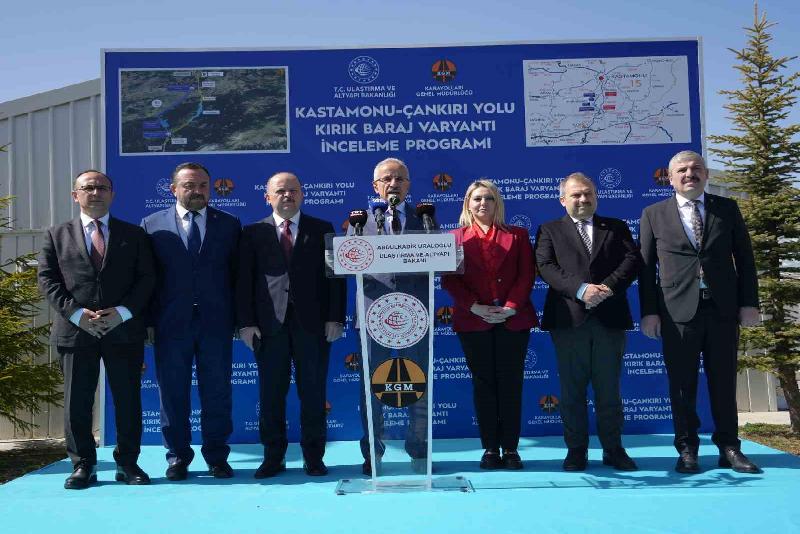 Ulaştırma ve Altyapı Bakanı Abdulkadir Uraloğlu, Kastamonu’da inşa edilen Kırık Barajı altında kalacak olan Kastamonu-Ankara karayolunun yerine inşa edilen Kırık Barajı Varyantı’nın şantiyesinde incelemelerde bulunarak çalışmalar hakkında yetkililerden bilgi aldı. Daha sonra basın mensuplarına açıklamalarda bulunan Uraloğlu, 8,2 milyar lira bütçeli proje çerçevesinde 5 bin 330 metre uzunluğunda 1 adet çift tüp tünel, 279 metre uzunluğunda 1 adet tek tüp tünel, 686 metre uzunluğunda 2 çift viyadük, 6 adet farklı seviyeli kavşak ve 2 adet hemzemin kavşak inşa edildiğini belirtti. Proje genelinde yüzde 29, fiziksel gerçekleşme kaydettiklerini söyleyen Uraloğlu, Kastamonu’ya yapılan yatırımlarla ilgili de bilgi verdi.