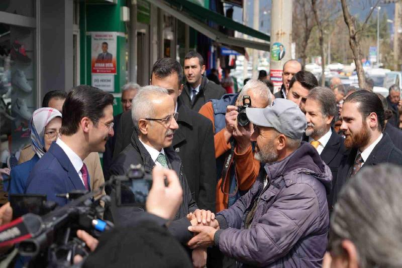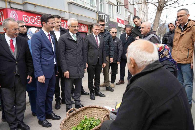 Açıklamalarının ardından Bakan Abdulkadir Uraloğlu, esnafı ziyaret ederek, AK Parti Bolu Belediye Başkan Adayı Muhammed Emin Demirkol’a destek istedi.