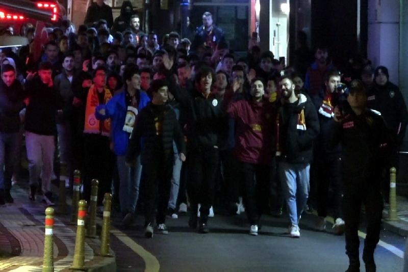 Polis ekiplerinin de geniş güvenlik tedbirleri aldığı derbi öncesinde taraftarlar, maçı izleyecekleri alana kadar tezahürat ve sloganlarla yürüdü. Taraftarlar, maçın başlamasına dakikalar kala, izledikleri kafelerde yerlerini aldı.