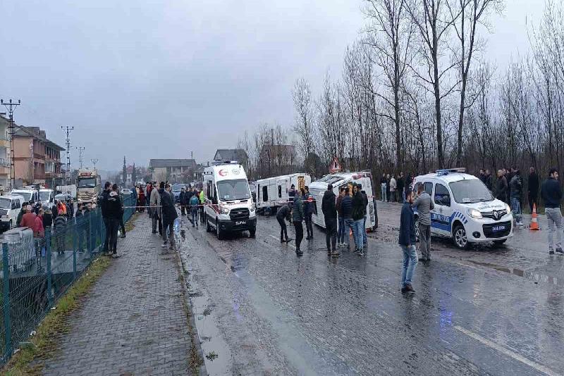 Bartın Kurtköy mevkisinde peş peşe Organize Sanayi Bölgesine seyir halinde olan Necmi Gökalp yönetimindeki 74 M 0203 plakalı minibüsle, Erol Arslan yönetimindeki 74 M 0469 plakalı minibüs çarpıştı. Çarpışmanın ardından her iki araç da savrularak devrildi. Feci kazada servis sürücüsü olduğu öğrenilen bir kişi hayatını kaybederken, ilk belirlemelere göre araçlarda bulunan 15 kişi yaralandı. Yaralılar, olay yerine çağrılan ambulanslarla hastanelere kaldırıldı.