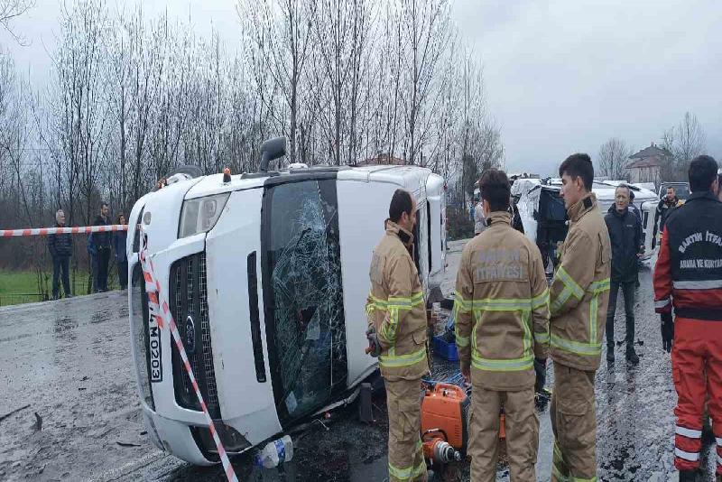 Bartın’da iki servis aracının çarpışarak devrilmesi sonucu ilk belirlemelere göre, 1 kişi hayatını kaybederken, 15 kişi de yaralandı.