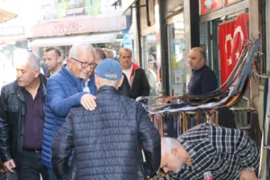 Kdz. Ereğli Belediye Başkanı Halil Posbıyık 19 Kasım’da yaşanan büyük afet sonrası esnaf ziyaretlerine bir yenisini ekledi. Başkan Yardımcıları ve Daire Müdürleri ile çarşı merkezinde esnaf ziyaretinde bulunarak “geçmiş olsun” dileğinde bulundu. Başkan Posbıyık, vatandaşlara alışverişlerini yerel esnaftan yapmaları çağrısını yeniledi.