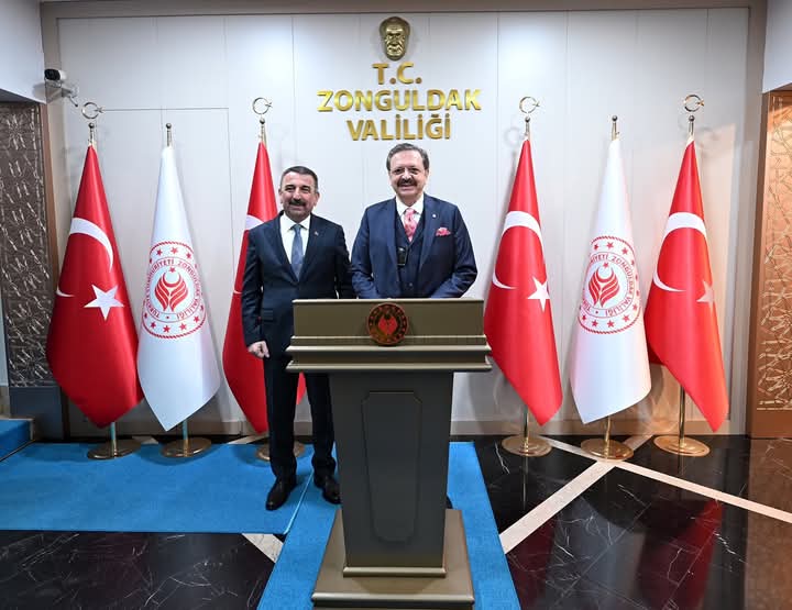 Zonguldak Dedeman Otel’deki ödül töreninin ardından Zonguldak Valisi Osman Hacıbektaşoğlu’nu ziyaret eden Hisarcıklıoğlu’na Kdz.Ereğli Ticaret ve Sanayi Odası Başkanı Arslan Keleş eşlik etti.