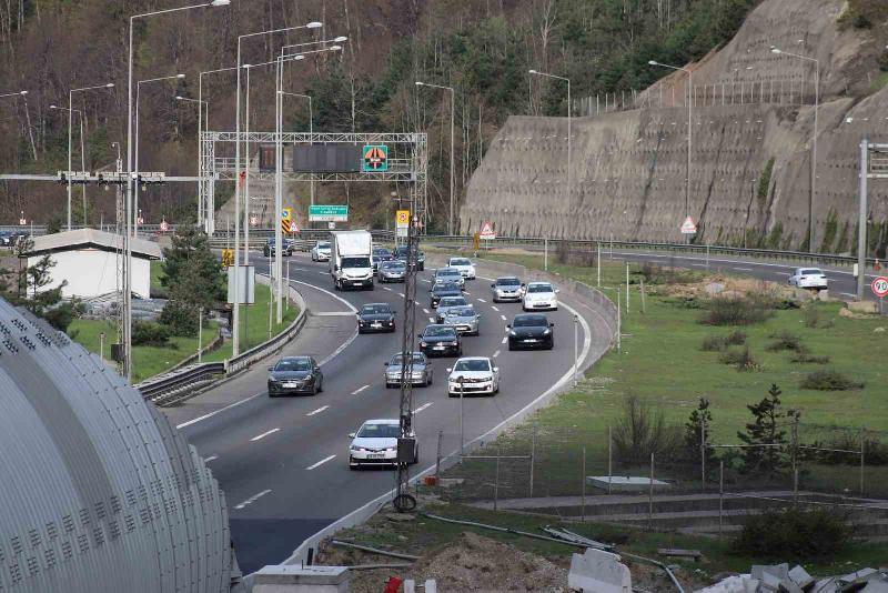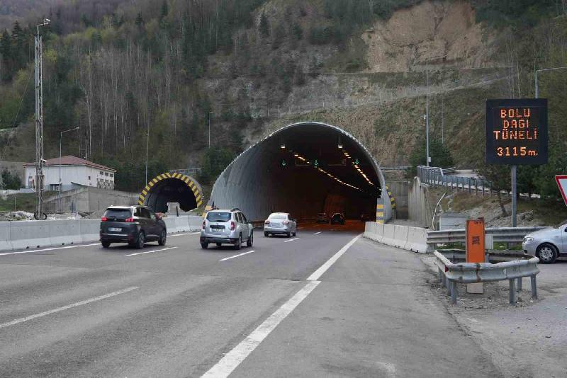 Türkiye’nin en önemli geçiş noktalarından biri olan Anadolu Otoyolu’nun Bolu Dağı Tüneli geçişinde Ankara istikametinde bayram tatili için memleketlerine gitmek isteyen tatilcilerin akıcı yoğunluğu sürüyor.