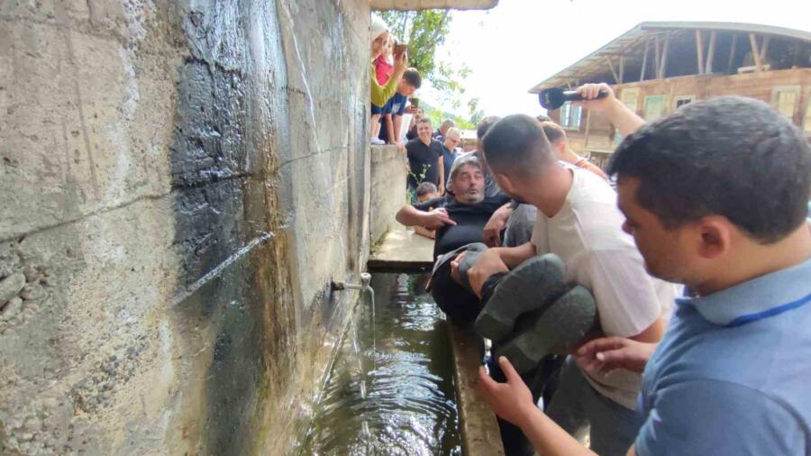 Çeşmede ıslanmaktan kaçamayan Hasanoren koyu muhtarı Altan Çetin, “Şu andaki ortamdan pek memnun değilim. Ama yapılacak bir şey yok. Çekilen çile kutsaldır. Hedefe giden yolda bu Aydin abimin hediyesi oldu. Bu sene inşallah bir asırdır geleneklerimizi devam ettiriyoruz. Örf ve adetlerimizi bu konuda iyidir. Her sene yaz-kış demeden bu geleneklerimiz her şekilde devam ettirilmektedir. Bu sadece su ile sınırlı kalmıyor. Şimdi ben çamur olaylarına girmek istemiyorum benden sonrakiler yapabilirler merdivenlerde adam kurutma olmuşken tam olsun teşekkür ederim” dedi.