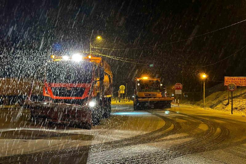 Karayolları ekipleri kar yağışının yolu kapatmaması için çalışmalarını sürdürüyor. Bölgede sabah saatlerine kadar kar yağışı bekleniyor. Öte yandan, kar yağışı nedeniyle ulaşımda herhangi bir aksama yaşanmadı.