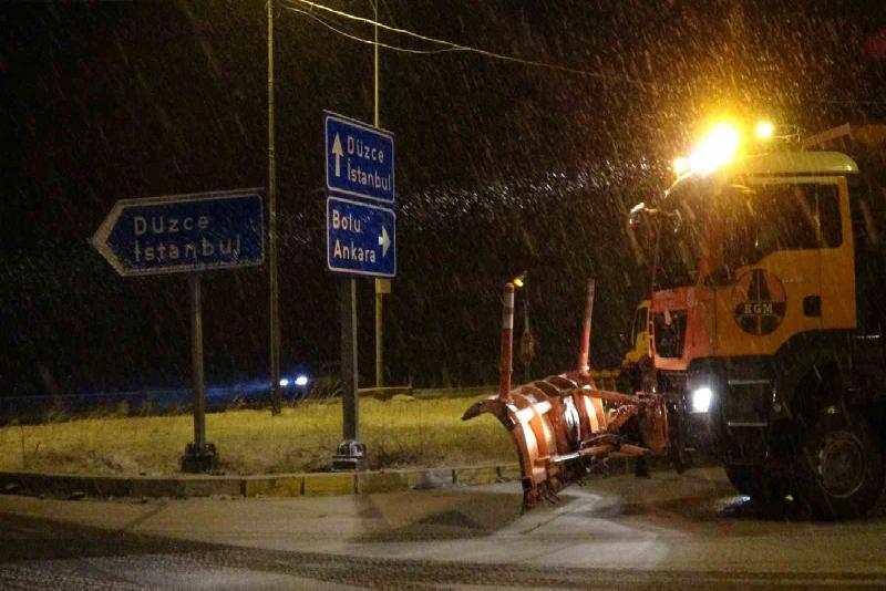 Bolu’da, gün boyu sağanak yağış etkili oldu. Akşam saatlerinde sağanak yağış yerini kar yağışına bıraktı. Bolu’nun yüksek kesimlerinde ve Türkiye’nin en önemli geçiş noktalarından biri olan D-100 karayolu ve Anadolu Otoyolu’nun Bolu Dağı geçişinde kar yağışı etkili oluyor. Kar yağışının etkili olduğu ve kar kalınlığının 5 santimetreye ulaştığı D-100 karayolu Bolu Dağı kesimi ve D-100 karayolunun Yumrukaya, Abant Kavşağı, Elmalık, Bakacak, Seymenler, Karanlıkdere, Bıçkıyanı, Sarıçökek bölgelerinde sürücüler dikkatli bir şekilde ilerliyor.