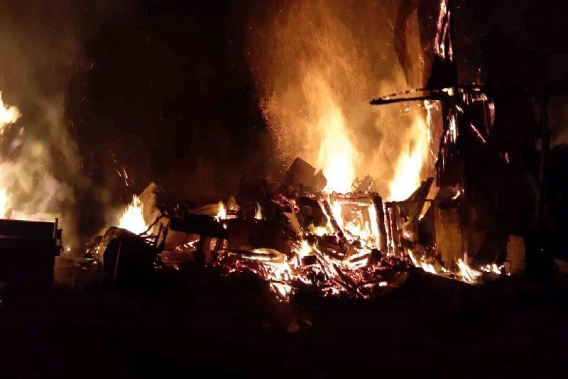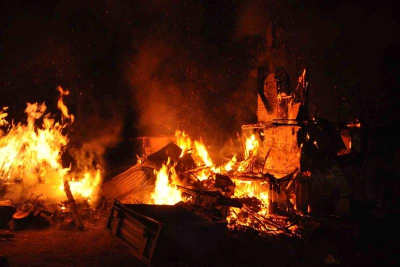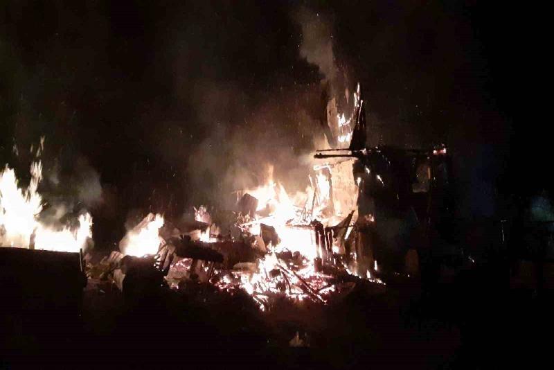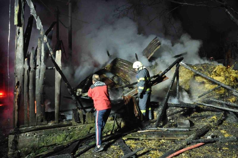 Bolu’nun Mudurnu ilçesine bağlı Çepni köyünde gece saatlerinde çıkan yangında 3 katlı ev, ahır ve samanlık küle döndü.