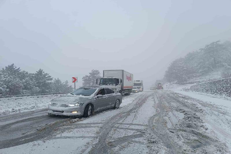 Bolu-Mudurnu karayolunda etkili olan yoğun kar yağışı nedeniyle onlarca araç yolda kaldı. Kontrolden çıkarak yol kenarında mahsur kalan araçlar, çekici yardımıyla kurtarıldı.