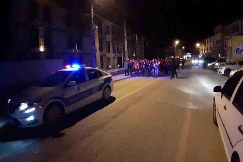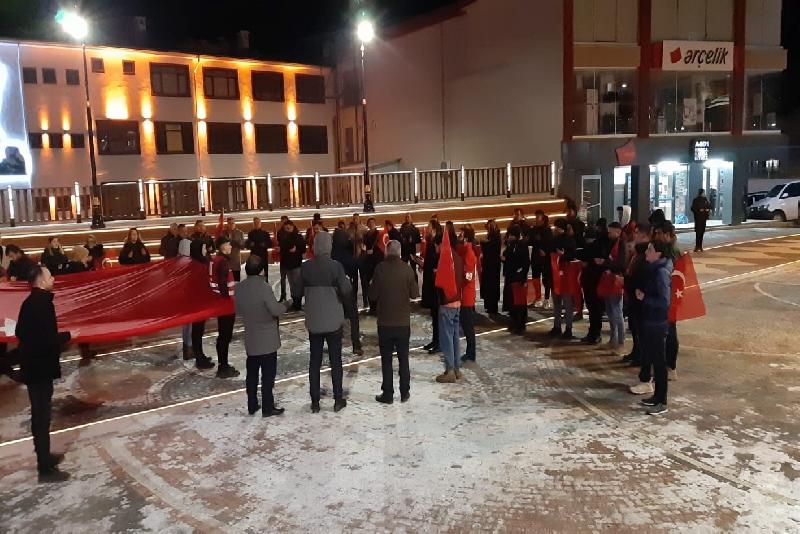 Bolu’nun Mudurnu ilçesinde dün şehit düşen 9 kahraman asker için yürüyüş düzenleyen çok sayıda vatandaş terörü lanetledi.