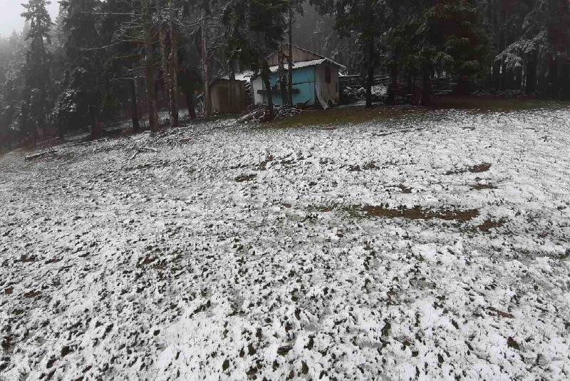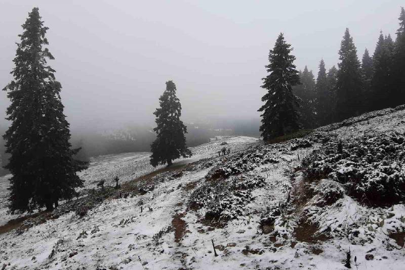Bolu’nun yüksek kesimlerinde dün gece etkili olan kar yağışı nedeniyle yeşil alanlar beyaz örtüyle kaplandı.