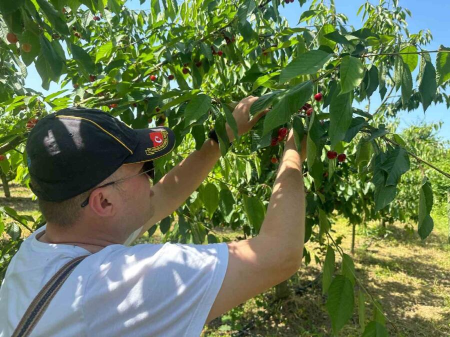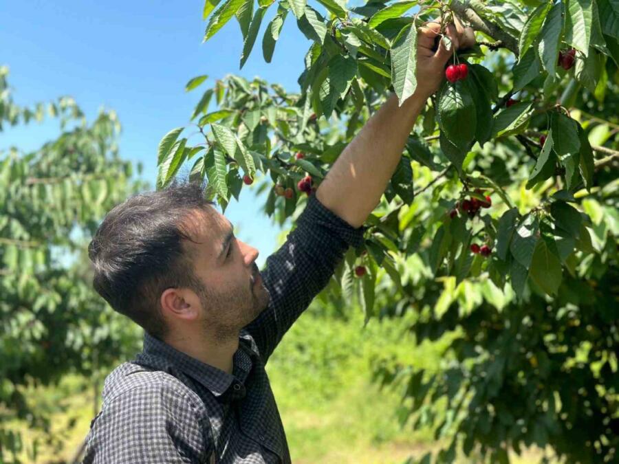 DÜZCE (İHA) – Düzce’de 8 dönümlük araziye dikilen 440 kiraz ağacı vatandaşları adeta çocukluklarına götürüyor. Aileleriyle birlikte bahçeye giren vatandaşlar, istedikleri ağaçtan ücreti karşılığında kiraz toplayabiliyor.