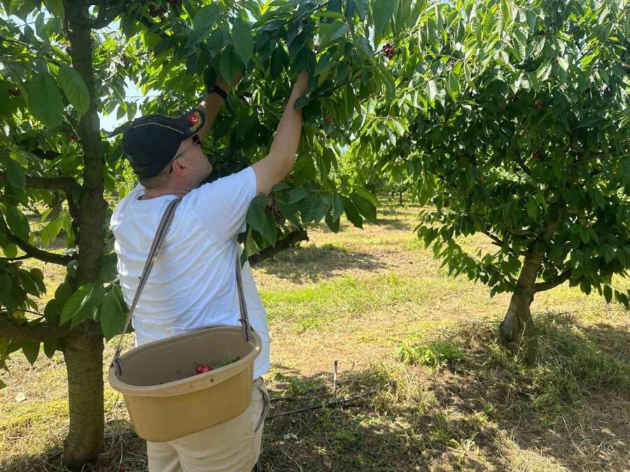 Ailesiyle birlikte kiraz bahçesine gelen bir vatandaş, “Kendi bahçemiz gibi topluyoruz. Kirazları ailemizle paylaşıyoruz. Gerçekten güzel bir duygu. Herkesi davet ediyoruz, bekliyoruz. Ben bu bahçede çocukluğuma gidiyorum” şeklinde konuştu.