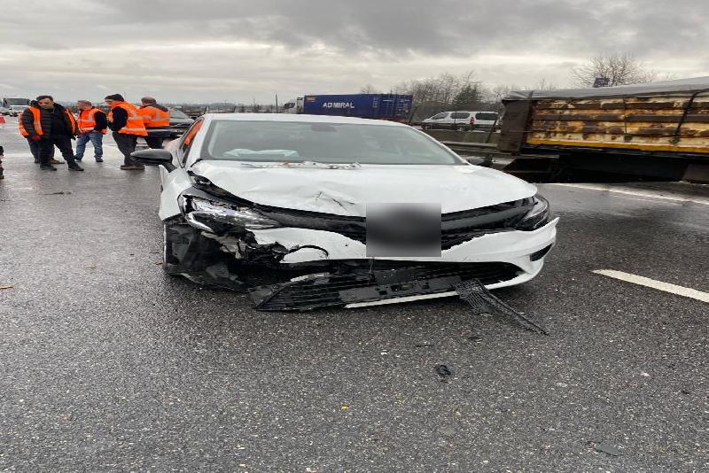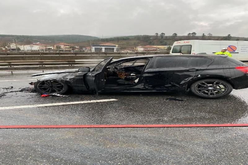 Anadolu Otoyolu Düzce geçişinde 2 otomobil çarpıştı. Kazada otomobillerden biri yandı.
