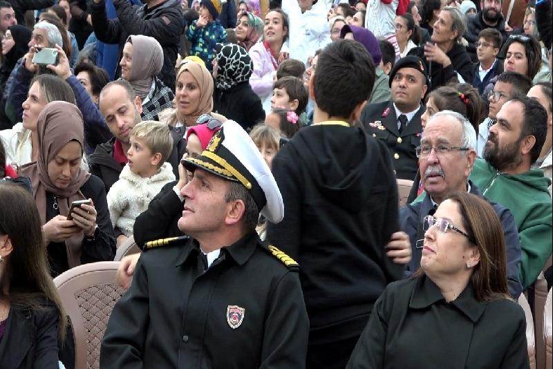 Bartın Cumhuriyet Meydanı’nda gerçekleşen etkinlik İstiklal Marşı ve saygı duruşu ile başladı. Polis ve askerlerin yoğun güvenlik tedbiri aldığı program Jandarma Genel Komutanlığına bağlı Çelik Kanatlar Helikopter gösterisi ile devam etti. Meydana yakın bir şekilde uçan 2 helikopter, bina ve argaç aralarına ise aniden sortiler yaparak yürekleri ağızlara getirdi. Meydanın üzerinden yavaş ve hızlı şekilde uçuşlar yapan helikopterler, yaptıkları manevralarla dosta güven, düşmana korku saldı. Alanda bulunan protokol ve vatandaşlar ise yaptığı sorti ve manevralarla zaman zaman gözden kaybolan helikopterlere el salladı. Gözleri ile her yerde helikopterleri arayan vatandaşlardan bazıları ise cep telefonu ile o anları kaydetti.
