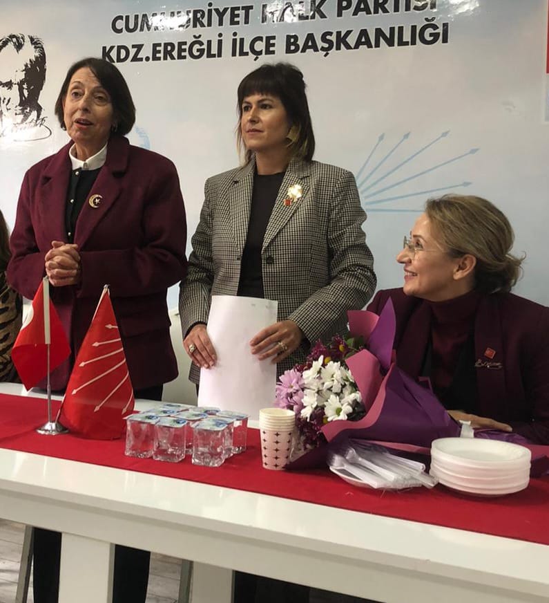 Cumhuriyet Halk Partisi (CHP) Karadeniz Ereğli İlçe Kadın Kolları yönetimi, bu yılın ilk toplantısını üyeler, bağışçılar, CHP İlçe Başkanı Zerrin Yılmaz Erdoğan ve CHP İl Kadın Kolları Başkanı Nazan Pulat’ın katılımıyla ilçe binasında gerçekleştirdi. Toplantıda, kadın dayanışmasının önemi ve iktidar hedefi vurgulandı.