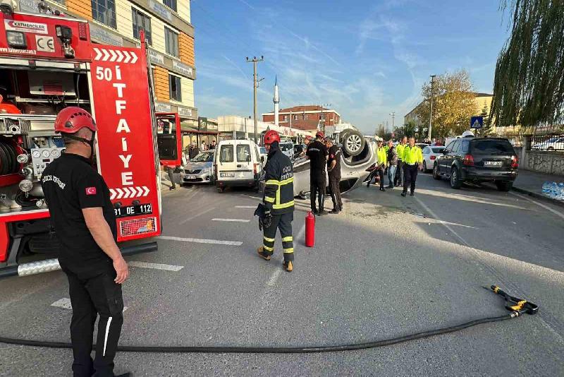 Kaza Bolu Caddesi Düzce Adliyesi önünde meydana geldi. Edinilen bilgilere göre, Soğancı Kavşağı istikametinden şehir merkezi istikametine seyir halinde olan G.H. idaresindeki 81 ACY 375 plakalı Toyota marka cip, Adliye mevkiinde park etmek isteyen M.Ö. idaresindeki 14 ES 943 plakalı opel marka hafif ticari araca çarpmasının ardından ters döndü. Kazayı görenlerin 112 Acil Çağrı Merkezine yaptığı ihbarı üzerine bölgeye sağlık, polis ve itfaiye ekipleri sevk edildi. Kazada G.H.(65) ve O.A.(27) yaralandı. Yarılılar ambulanslarla hastaneye kaldırıldı.