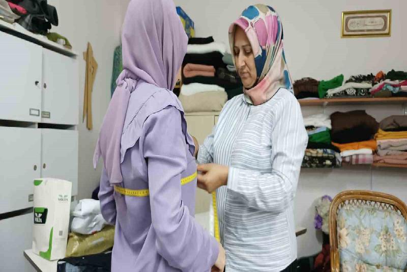 Düzce’de çocuklarının çeyizlerini hazırlamak için Halk Eğitim Merkezi’nde dikiş nakış kurslarına katılan Ümran Usta, eğitimler sonrası açtığı dükkanda 10 yıldır terzilik yapıyor.