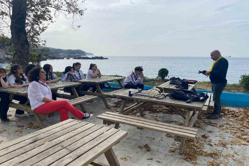 Dron ile havadan da görüntülenen etkinlikte Atatürk portresi, Türk Bayrağı ve Mehmet Çelikel Lisesi’nin bayrağı denizin altında birlikte açıldı. Etkinlik sonunda dalgıçlar ve öğrenciler hatıra fotoğrafı çektirdi.