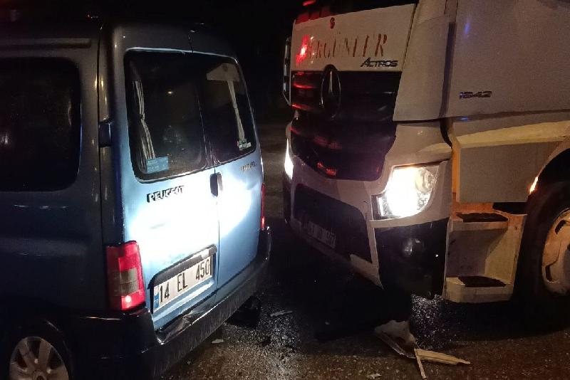 Bolu’da D-100 kara yolunda tır ile hafif ticari aracın çarpışması neticesinde bir kişi yaralandı.