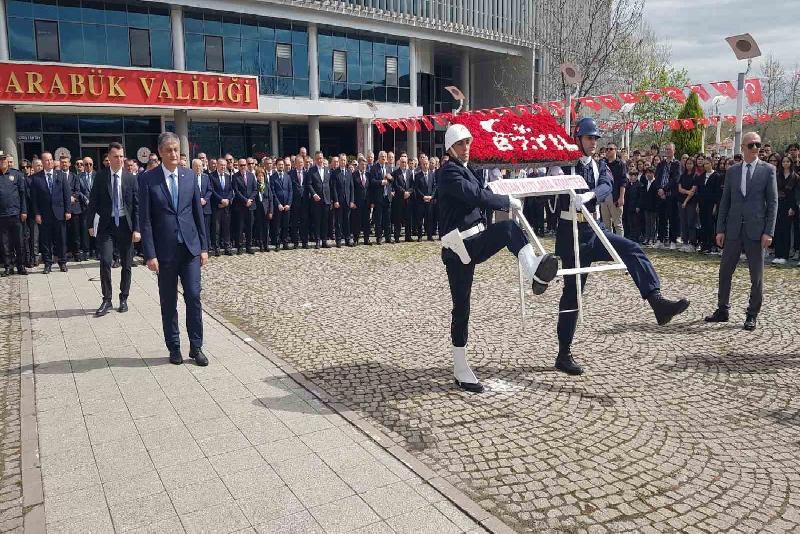Karabük Valiliği Atatürk Köşesi’nde düzenlenen etkinlikte kutlama komitesi adına Vali Mustafa Yavuz tarafından çelenk sunumu yapıldı. Saygı duruşu ve İstiklal Marşı’nın okunması ile devam programda konuşan Karabük Valisi Mustafa Yavuz, “3 Nisan 1937’de çeltik tarlalarında temeli atılan, gücünü emek ve çelikten alan KARDEMİR; yaktığı mavi ateşle adeta Karabük’ün doğuşunu müjdelemiştir. Yakılan o ateş, sadece fabrikaların bacalarında değil, aynı zamanda umutların da ateşleyicisi olarak küllerinden yeniden doğan bir milletin yüreklerinde yankılanmıştır. Çünkü 3 Nisan’da yazılan bu hikaye, bir kentin değil, aksine koskoca bir milletin azminin, emeğinin ve kararlılığının da hikayesidir” dedi.